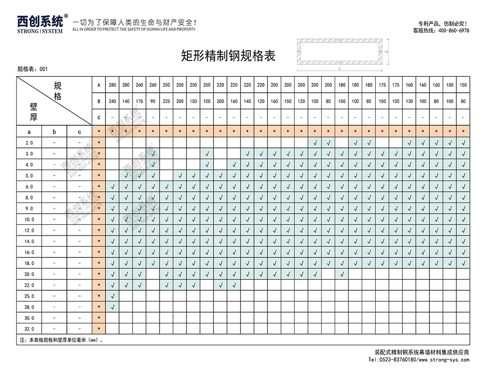 《最新规格型号一览表》西创系统装配式精制钢直角方管精致钢尖角方管(包含高精钢、精密钢、精细钢)