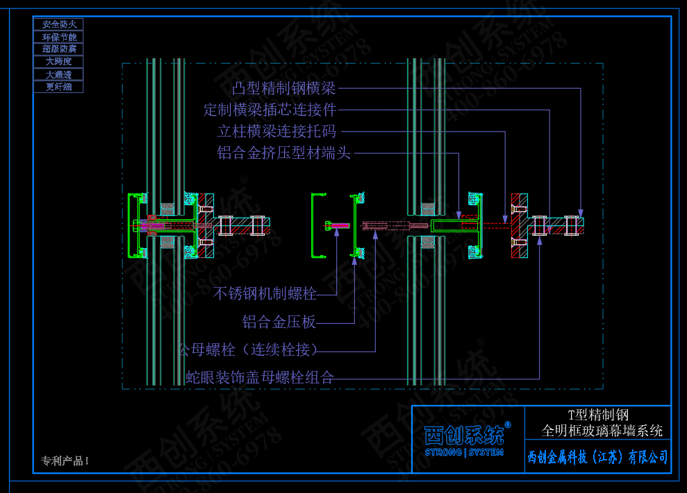 西创系统致力于装配式精制钢系统幕墙,材料的研发、生产及销售,完美迎合当前幕墙行业大通透、大跨度、更纤细的发展理念,为建筑幕墙提供一站式解决方案!公司现已拥有精制直角钢型材生产设备、生产工艺、产品外观等相关专利40余项!西创系统将“一切为了保障人类的生命与财产安全”作为企业使命和追求,进一步改善人类居住环境。