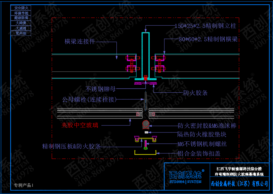 西创系统冷弯型材精制钢直角钢玻璃幕墙